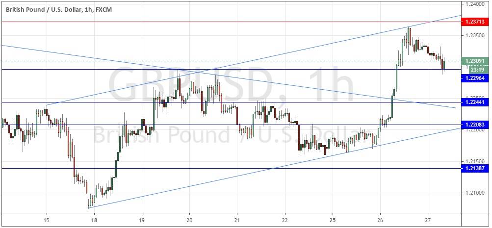 This was a great call, as the price rose firmly over the day before making a short-term bearish retracement from a price close to the resistance at 1.2371, and the price is still higher now than it was 24 hours ago as at the time of writing.