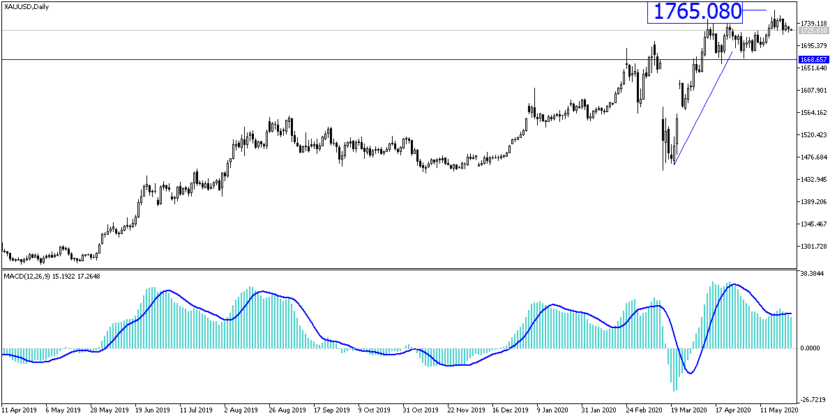 The optimism that prevailed in the financial markets due to the successive announcements that reaching a vaccine to counter the deadly Coronavirus was close, pushed investors to take risks, and give up safe heavens, with gold being among the most important ones. Accordingly, the price of gold fell to the $1707 support at the time of writing, after an upward stability around the $1740 resistance in the beginning of this week’s trading. Despite the recent decline, there are many factors that may contribute to pushing gold to move upward again. The dispute between the United States and China has not ended, and the formal and final announcement of a drug to deal with the Covid-19 has not yet taken place, and what has been announced are just preliminary results of experiments. This is in addition to the European concern about a mysterious future for Brexit and the political situation in the United States with the upcoming presidential elections.