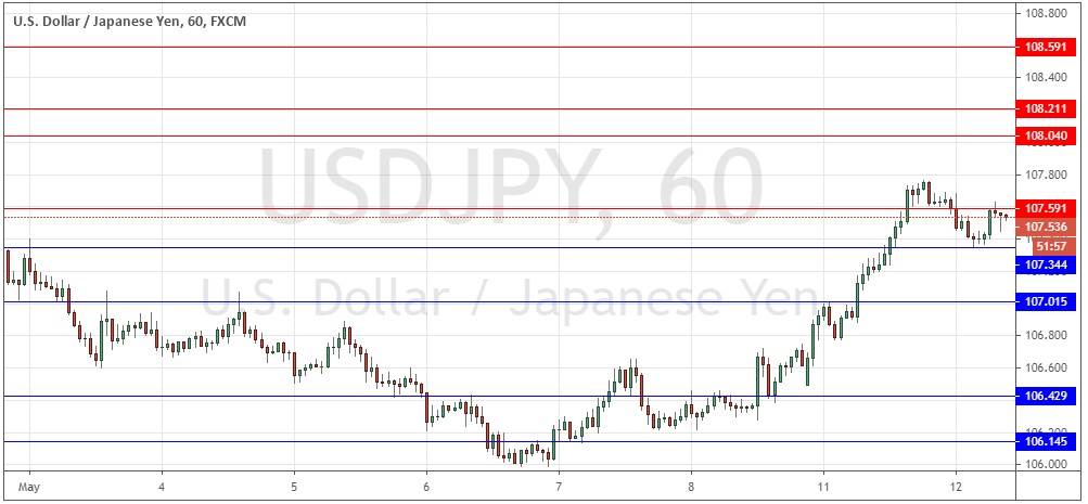 I would not take any short trades today, but I would be prepared to take cautious long trades from bullish bounces at either 107.34 or 107.02. I am cautious due to the lack of any real long-term trend in this currency pair.