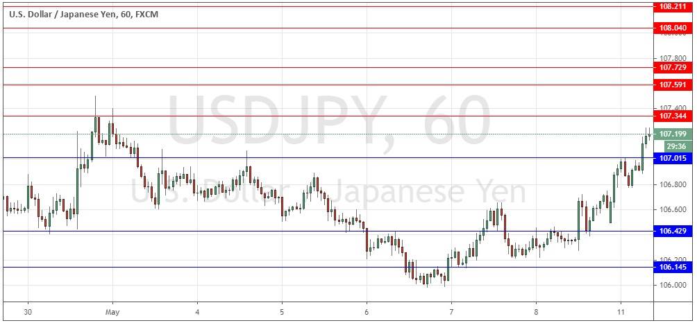 Last Thursday’s Signals were not triggered as there was no bearish price action when the resistance levels identified at 106.42 and 106.55 were reached.