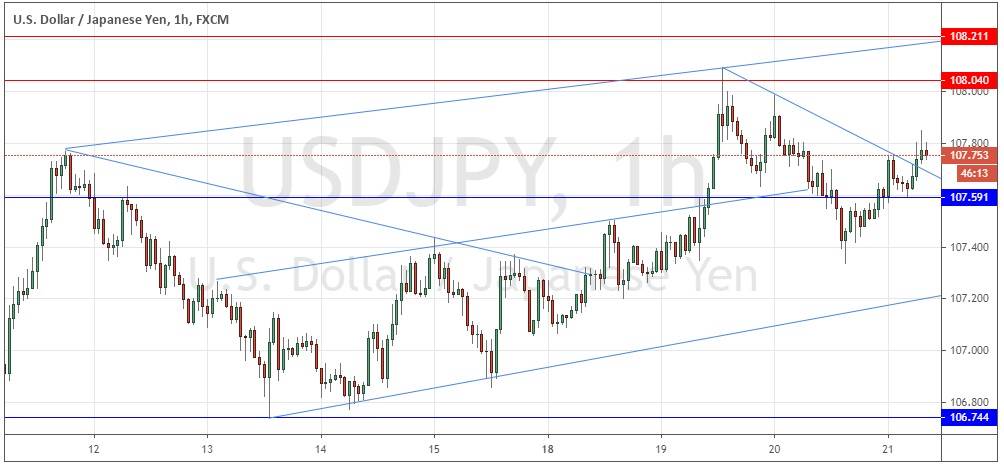I wrote yesterday that the technical picture had become less bullish but I was prepared to take long trades from bullish bounces at 107.59 or at the lower trend line of the former price channel, as well as another short trade from 108.04.