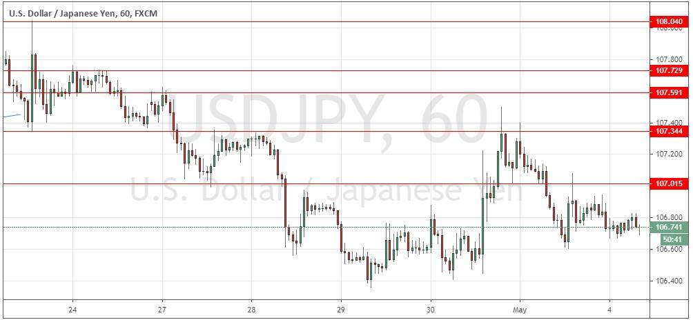 This was a good call as the level at 107.34 held and gave an opportunity to enter a short trade which produced a maximum potential profit so far of about 50 pips.