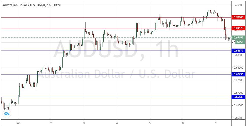 I was right about the price breaking above 0.7000 although I did not expect this to happen so quickly. Unfortunately, my long bias call did not work out well as after making a few long pips, the Asian session saw a firm downturn in risky assets like the Australian Dollar and a resumption of buying safe havens such as the USD, driving the price back down and reaching well below the psychologically important 0.7000 level.
