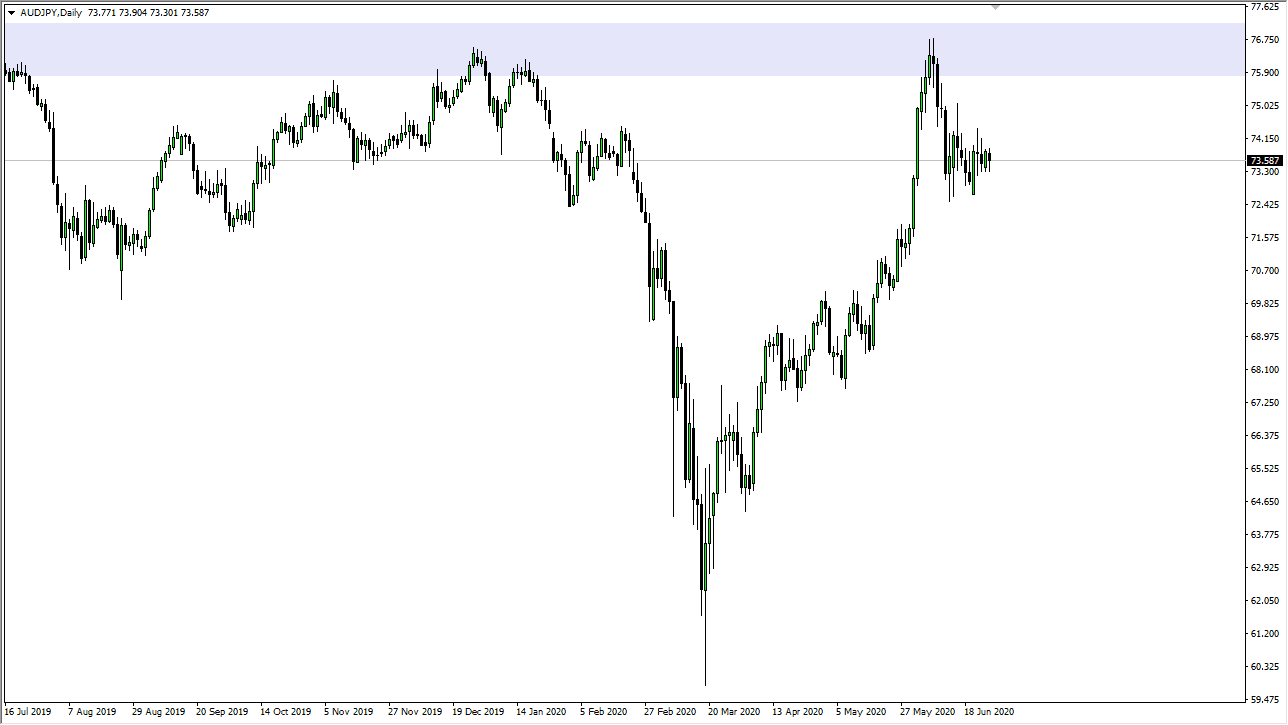 It is worth noting that the ¥75 level continues to be crucial, and at this point, we cannot break above it. The last couple of weeks have been relatively tight which tells me that the market is doing one of a couple of things: It either digested gains from the previous drive higher, or we are trying to figure out where we are going next. I suspect it is probably the latter of the two because there are so many things out there moving when it comes to headlines.