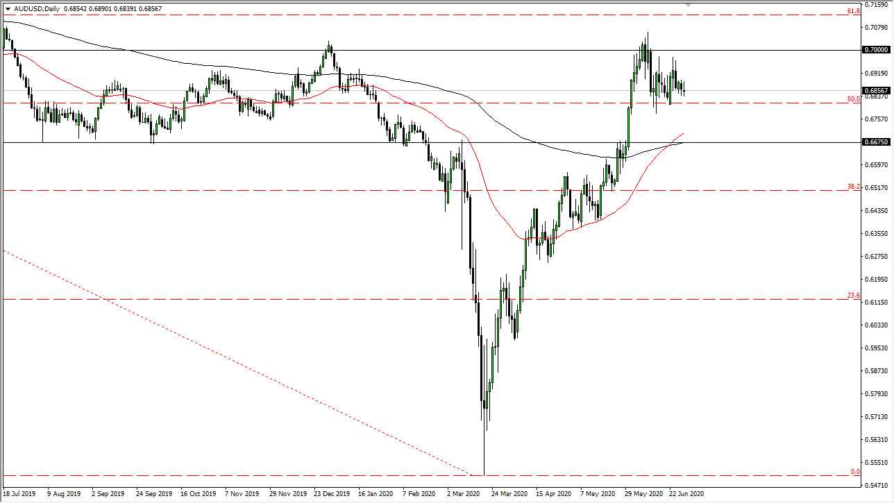 The Australian dollar has done almost nothing during the trading session on Monday, as we have gone back and forth to show signs of lackluster behavior. After all, this is a market that had recently reached towards the 0.70 level above, which of course is a significant large, round, psychologically significant figure. At this point, it is only a matter of time before rallies will be sold, as the market continues to respect the 0.70 level.