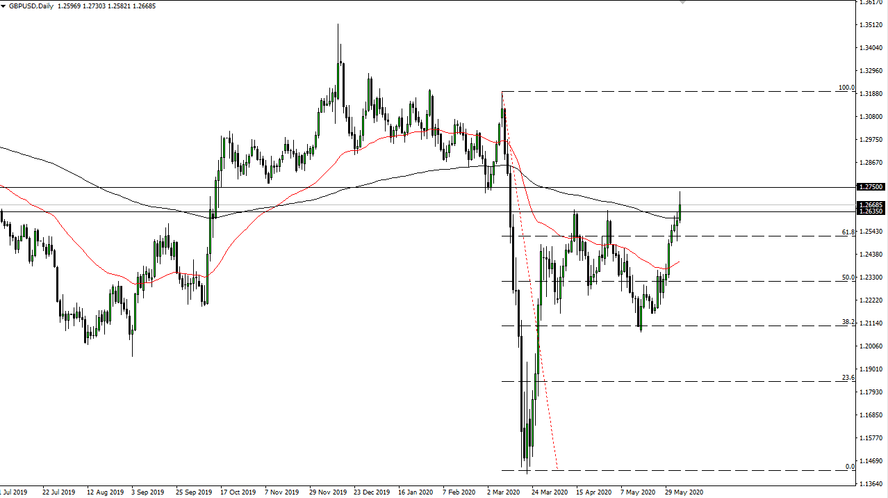 The British pound has rallied significantly during the trading session on Friday, breaking above the crucial 1.2650 level and the 200 day EMA. At this point, it looks as if the market is shying away from the 1.2750 level, an area that has been crucial more than once, not only as support and resistance, but also an area where we have seen a lot of flips back and forth.