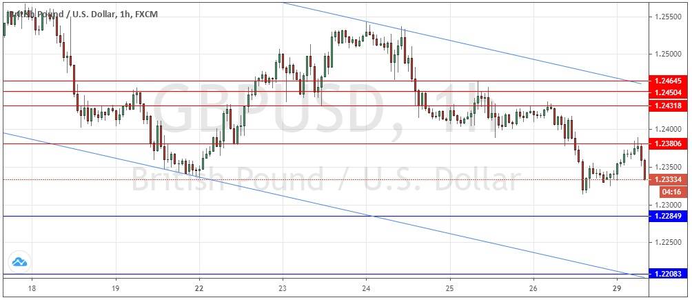 The price may find support for a while at either of the support levels identified below the current price, but there are good reasons to be looking for short trades only in this currency pair. I will be very happy to take a short trade from 1.2381 if there is a retracement to that level and a bearish reversal off it.