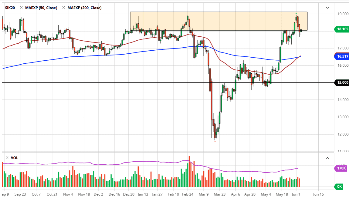 The silver markets initially fell during the trading session on Thursday but found buyers underneath to turn things around. This was interesting considering that the recovery in silver after the selloff was not necessarily influenced by the US dollar, which had been crushed. This is because silver was falling while the US dollar with being crushed, so I think we are just looking at old-fashioned support and resistance here. After all, the $18 level being broken to the upside as shown quite a bit of interest, and then a pullback from there shows a lot of market memory.