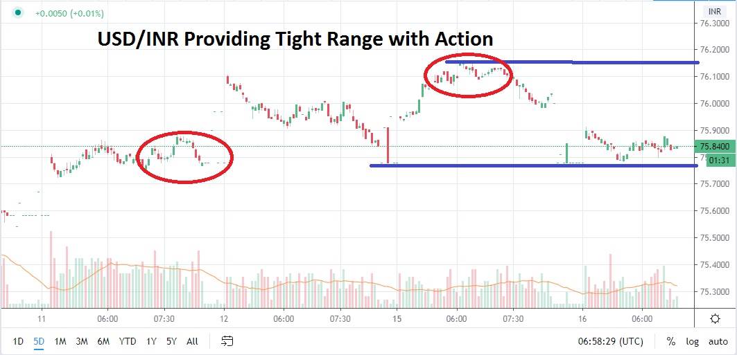 Trading volumes of the USD/INR are not very large and the Indian government does try to manage the range of the Indian Rupee carefully. However, the 75.2000 to 76.1000 value spread has become dominant and trading opportunities within this range abound for those who use proper risk management.