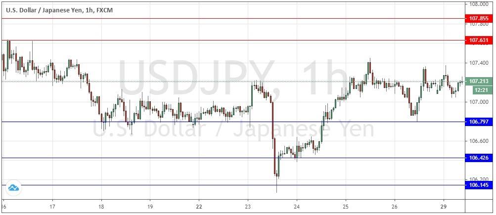 I thought that the price looked likely to consolidate above 107.00 but had room to rise to 107.63. I was looking for a long trade from a bullish bounce at a support level nearby, which did not happen, so this was at least enough to keep out of trouble.