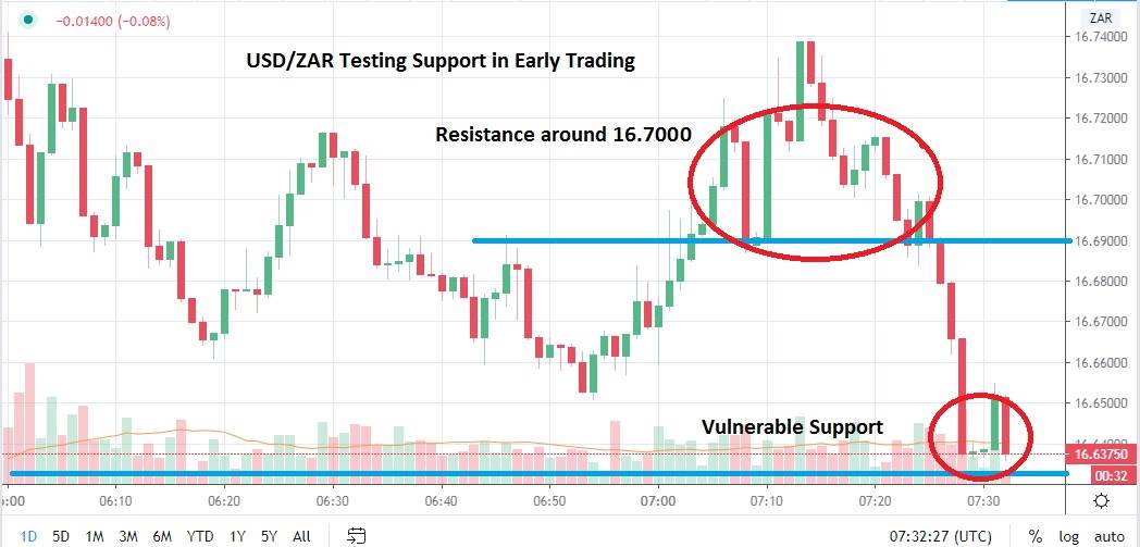 In early trading this morning the support level of 16.6000 appears to be developing into an intriguing juncture. The USD/ZAR traded near critical support levels of 16.4000 recently and then saw a rather predictable short term reversal upwards.