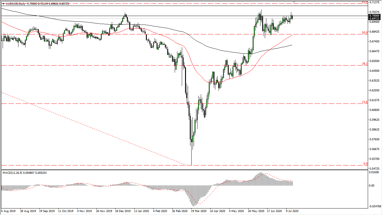 The Australian dollar initially tried to rally during the trading session on Thursday but failed again at the 0.70 level. Having said that, we need to keep things in perspective here, the Australian dollar only fell 30 pips or so. However, what I do see is that there is a lot of resistance extending from the 0.70 level to the 0.71 level, and therefore is going to take something rather special to break out. With that in mind, I also have to admit that this market has been rather relentless, so it is worth paying attention to the fact that the sellers have not been able to knock this pair back down.