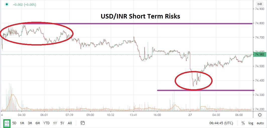 Resistance levels have proven strong for the USD/INR the past couple of weeks and have provided a solid ground to seek reversals. This morning’s short buying splurge of the USD/INR has taken the forex pair within the vicinity of 74.5600 and 74.6000, which setups a great test for technical traders based on their short term perceptions. Resistance around the 74.6700 may be tempting to target and if that juncture is broken, traders may aim for the 74.8000 mark which has proven a strong resistance level before.