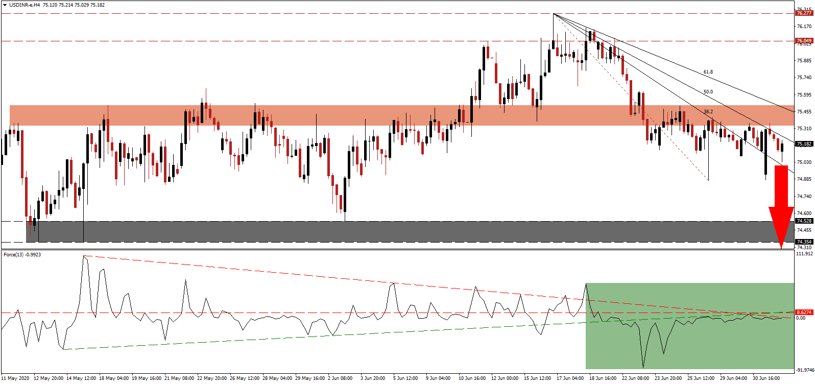 One day after the International Monetary Fund (IMF) revised its forecast for the Indian fiscal year 2020 ending in March down from a 2.0% increase to a 4.5% contraction, the National Council of Applied Economic Research (NCAER) published its outlook calling for a 1.3% GDP expansion. It previously forecast a plunge of 12.5% for the same period just a few weeks ago, unless the government implemented massive stimulus programs. Confirming the absence of a complete understanding of how the Covid-19 pandemic will impact India, NCAER also outlined one scenario calling for a 10.0% contraction and one for 0.00% growth. The USD/INR maintains its corrective stance with dominant breakdown pressures.