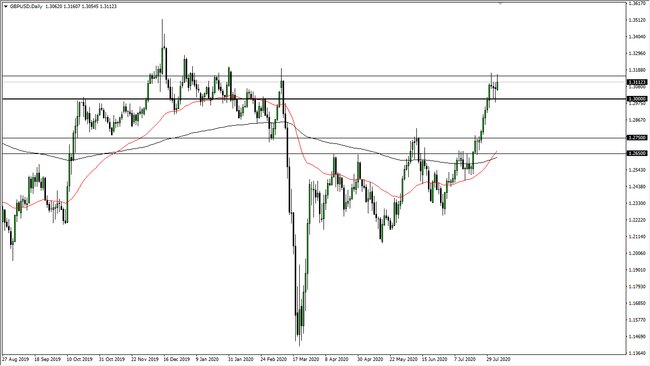 The Federal Reserve continues to flood the market with greenbacks, and that works against the value of the US dollar in general. This is one of the main reasons the British pound has rallied, due to the fact that the US dollar has fallen so hard. Now that we have pulled back from the highs, I think we may see a short-term buying opportunity on dips, and eventually, we will break out to the upside. If we can get above that, then it is likely that we go looking towards the 1.35 handle.