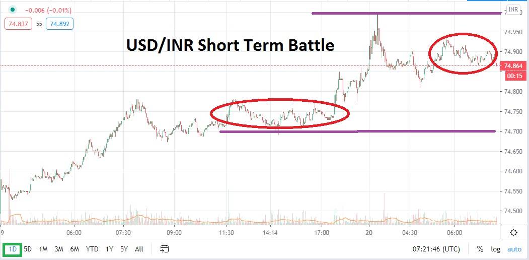 The tight trading range of the USD/INR fell apart yesterday as resistance proved vulnerable and bullish sentiment dominated. Speculators who were looking for support levels to be tested certainly had their emotions trampled upon if they did not have adequate stop losses in place. The resistance level of 74.9000 was broken higher and the 75.0000 juncture was challenged briefly.