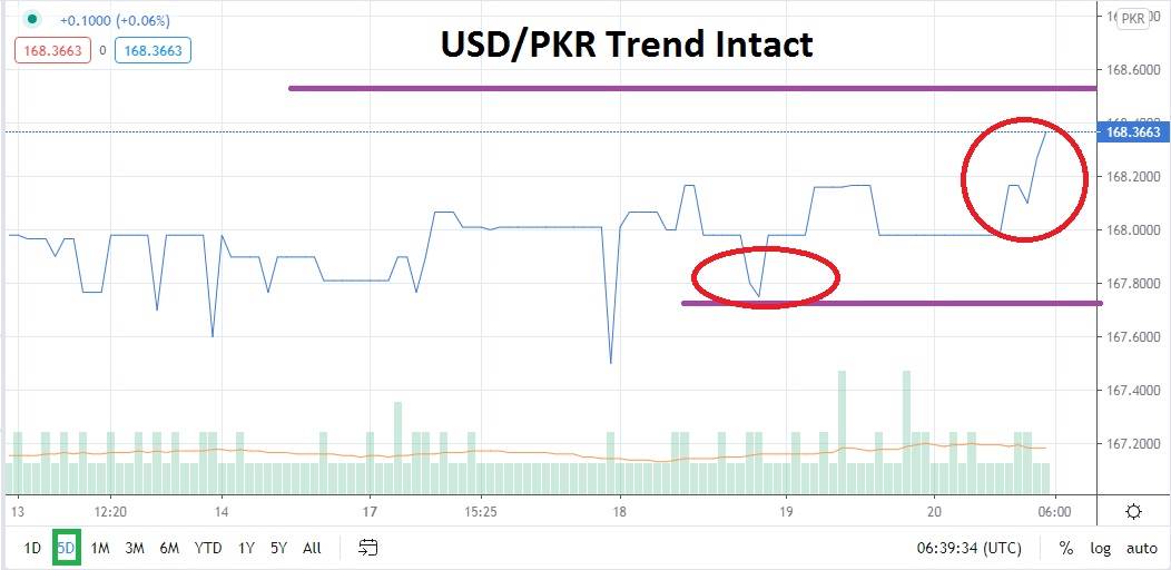 The USD/PKR has shown the ability to reverse lower and support levels near the 167.6000 mark were challenged just a couple of days ago. However, after hitting the low water mark, a progressive reversal higher ensued rapidly. Current support for the USD/PKR appears to be the 167.7000 level, but a decision to use stop losses below at the 167.5000 could prove to be the right decision.