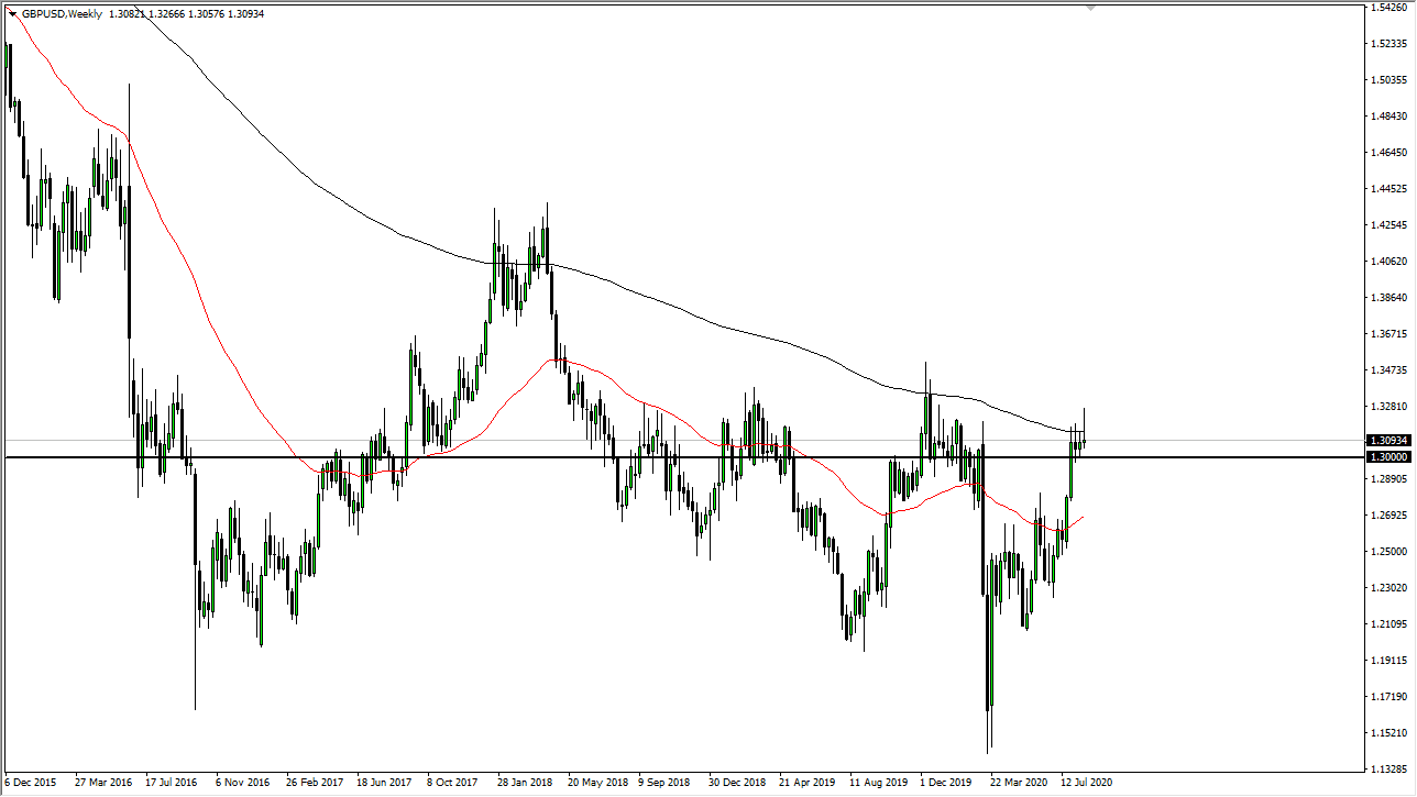 The US dollar has fallen during the course of the week, breaking below the ¥105.50 level at one point, before turning around to show signs of support. Ultimately, this is a market that looks like it could rally a bit from here and go looking towards the ¥107 level. That is an area that begins massive resistance extending all the way to the ¥107.50 level, and I think that signs of exhaustion in that area will continue to be sold into. The Federal Reserve continues to flood the market with greenbacks, so although we may get a little bit of a relief rally, I do not know that this changes anything from a longer-term standpoint.