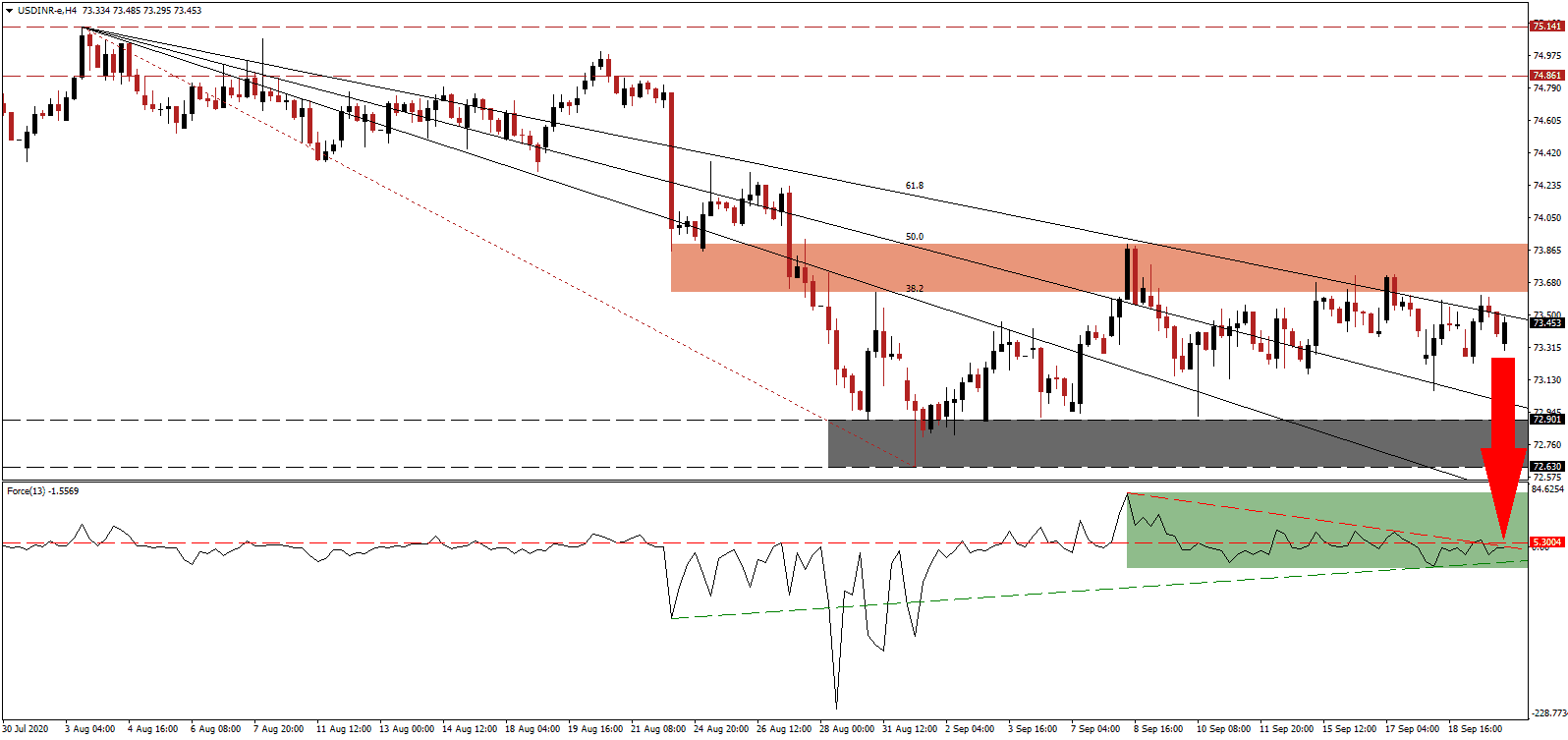 Without tax reforms, India will be unable to recover from the Covid-19 pandemic, while the economy was slowing before the virus emerged. Until the government of Prime Minister Modi addresses the heavy tax burden, his Made in India campaign will not yield results. Economist Rathin Roy, Managing Director of Research and Policy at ODI, noted Indian clothes are more expensive than imports from Bangladesh and Vietnam. It adds pressure for a complete overhaul of a dysfunctional system. The descending Fibonacci Retracement Fan sequence is favored to pressure the USD/INR into its support zone located between 72.630 and 72.901, as marked by the grey rectangle. A breakdown into its next support zone between 71.419 and 71.710 is likely.
