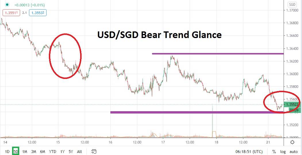The Singapore Dollar is testing values that were traded in December of 2019, meaning the USD/SGD is within a price range experienced before global fears of coronavirus cascaded through the markets. The past three trading sessions for the USD/SGD have proven to be significant. During the middle of last week, the Singapore Dollar saw a strong bearish movement occur, which was promptly followed by a feverish bull reversal, only to see another move lower Thursday with an emphatic downward trend puncturing support.
