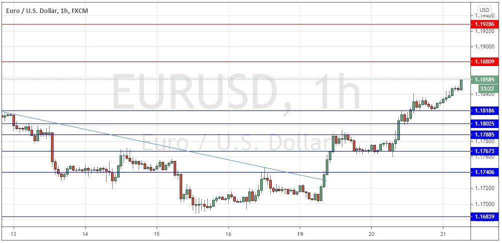 Therefore, I was ready to take a long trade if we had gotten two consecutive hourly closes above 1.1803 by 10 am New York time, and we did, which was a profitable approach.