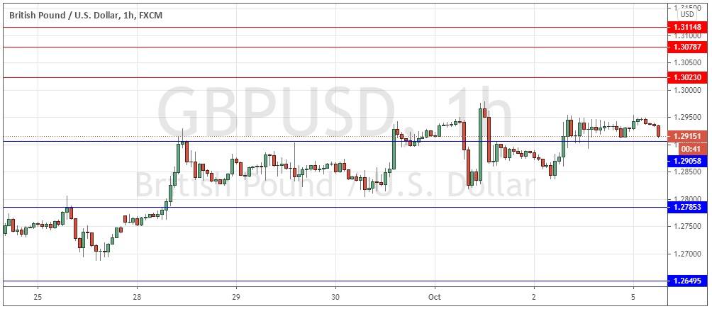 However, if the price keeps making a bullish rejection of 1.2906 during the first hour or two of the London session today, that will suggest we are likely to see somewhat higher prices, though there may be resistance at 1.2950 which continues to suppress the price.