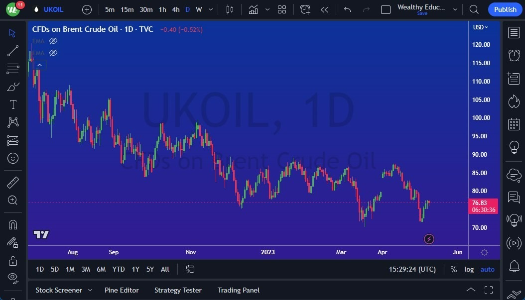 For the WTI crude oil market, attention needs to be paid to the 50-Day EMA above, which is near the $76 level. If the market can break above this level, it could open the possibility of a move toward the 200-Day EMA. On the other hand, if the market breaks down below the bottom of the range for the day, it could potentially drive down to the $70 level. If it falls further, the market could open the possibility of a move down to the $65 level.