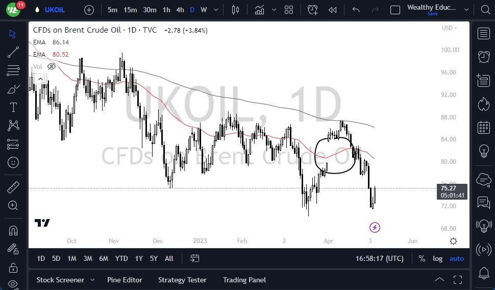 - Similarly, the Brent market has rallied above the $75 level, finding support at $70 before bouncing back.
