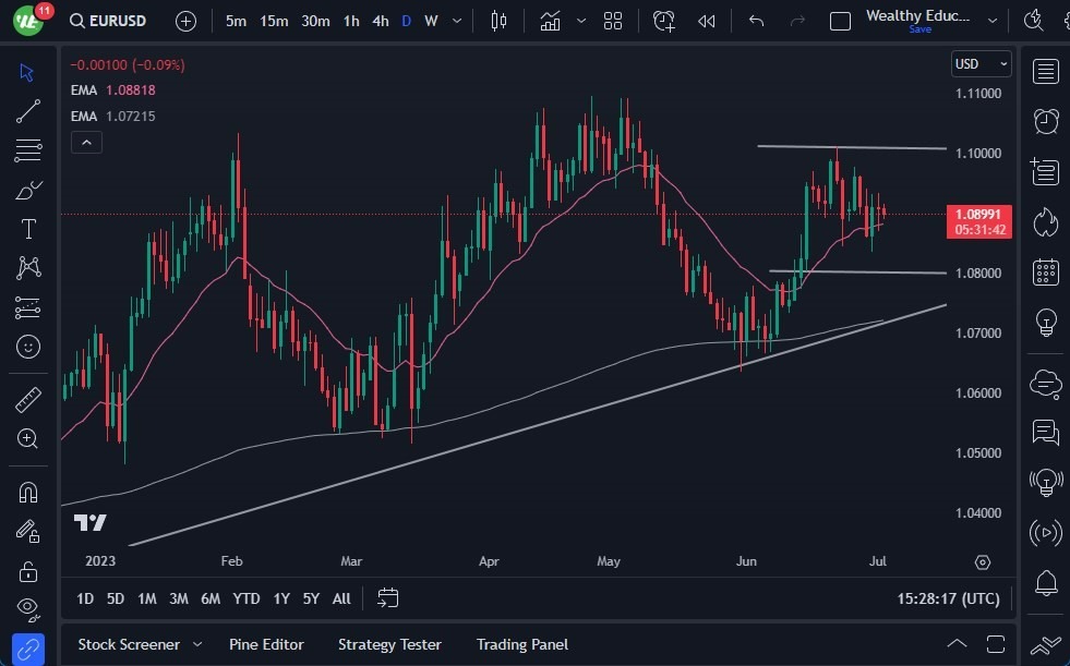 The EUR/USD currency pair experienced a slight decline during Tuesday's trading session, characterized by a back-and-forth movement. However, it's crucial to note that the United States celebrated Independence Day, which likely resulted in reduced liquidity for at least half of the day. Examining the market dynamics, the Venti-Day Exponential Moving Average (EMA) serves as a significant support level amidst recent consolidation. Considering the overall lackluster movement, it appears prudent to approach this market as a short-term trading opportunity at best.