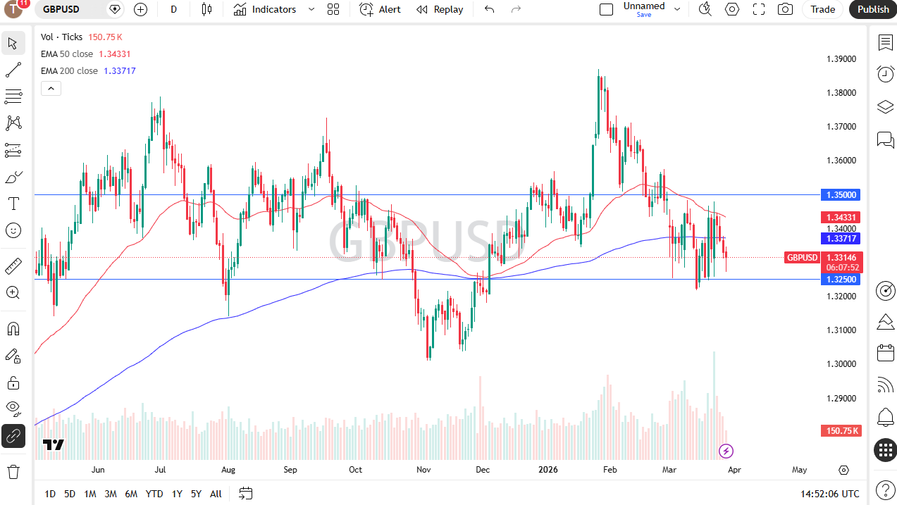 The British pound initially fell during the beginning of the trading session here on Friday, but it does look like the 1.3250 level is going to continue to see a bit of support. Ultimately, this is a market that I think continues to bounce back and forth between two major levels of the 1.3250 level being a floor and the 1.35 level above being a major resistance barrier.